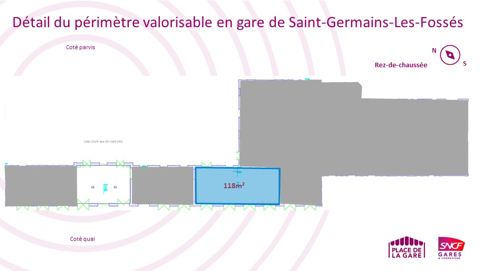 A louer au sein de la gare de Saint-Germain-des-Fossés, nous proposons à la location un espace de 118m² au rez-de-chaussée du bâtiment voyageur.