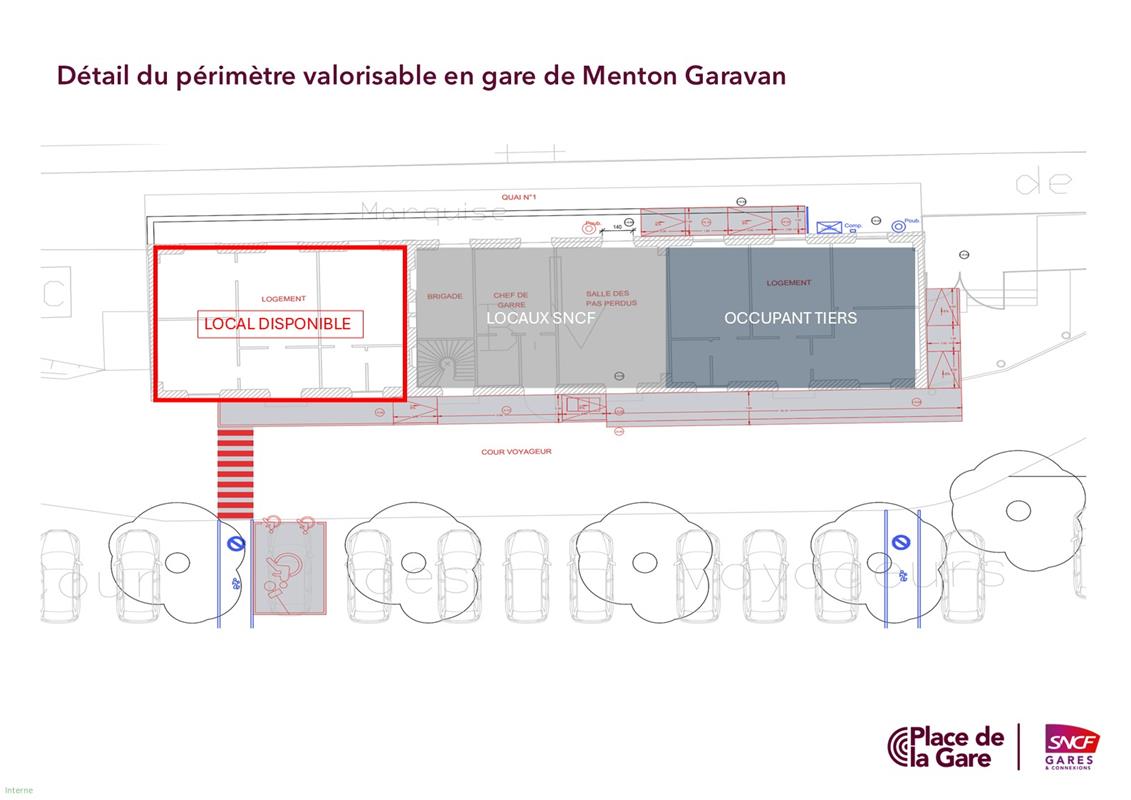 Soutenue par la Région Sud, SNCF Gares & Connexions propose à la location un local d'une surface de 80 m² environ au sein du bâtiment voyageurs de la gare de Menton Garavan en priorité pour une activité permettant la promotion de l’usage du vélo (atelier de réparation, location d’équipements…). D’autres activités peuvent être proposées après validation par SNCF Gares & Connexions.