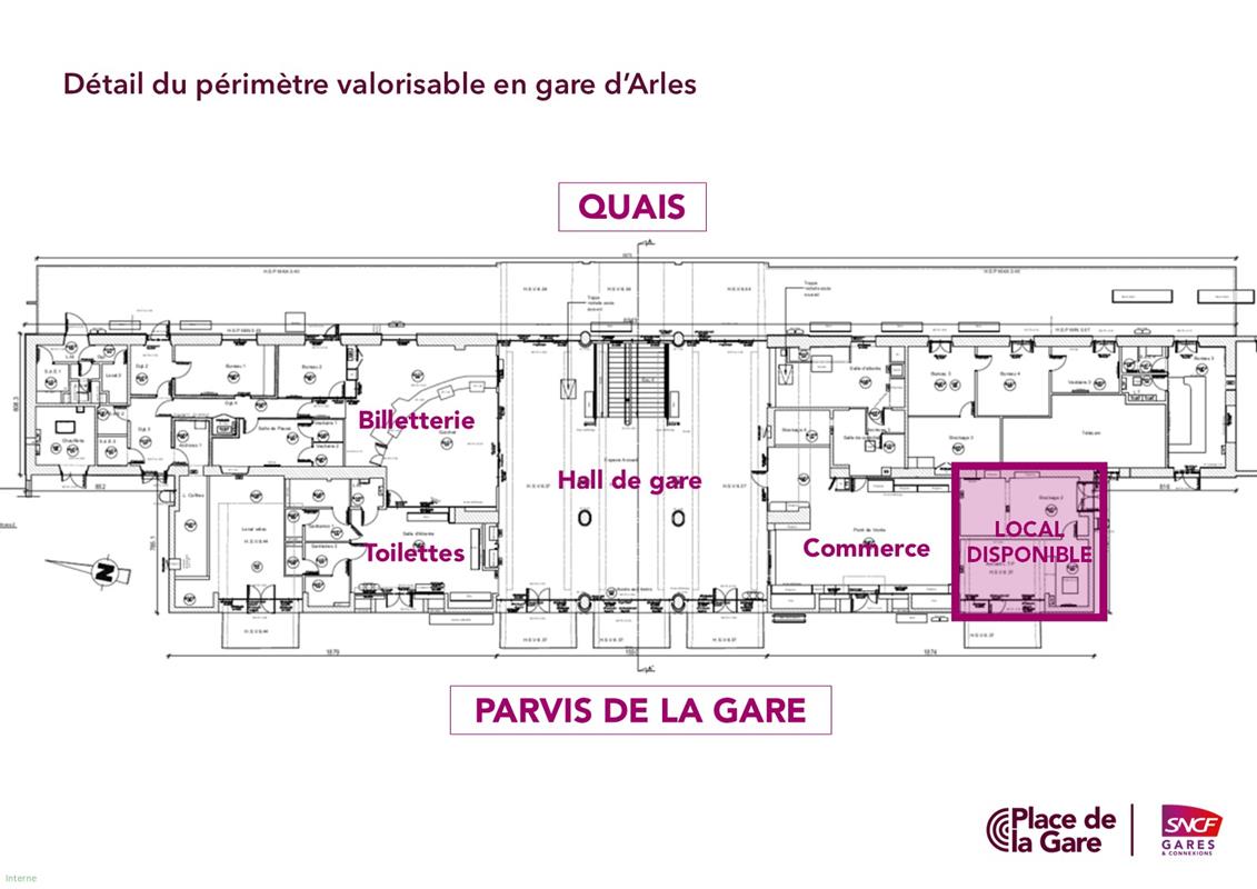 Au sein de la gare d’Arles, SNCF Gares & Connexions propose à la location un espace d'une surface totale de 53 m², réparti comme suit :