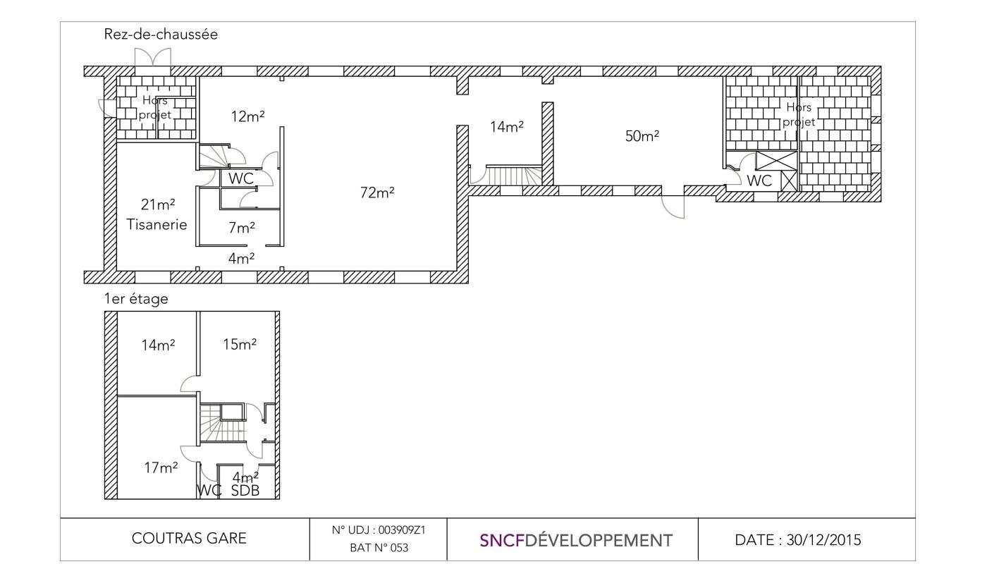 Au sein de la gare de Coutras, SNCF Gares & Connexions propose à la location un espace d'une surface totale de 188 m² en rdc
