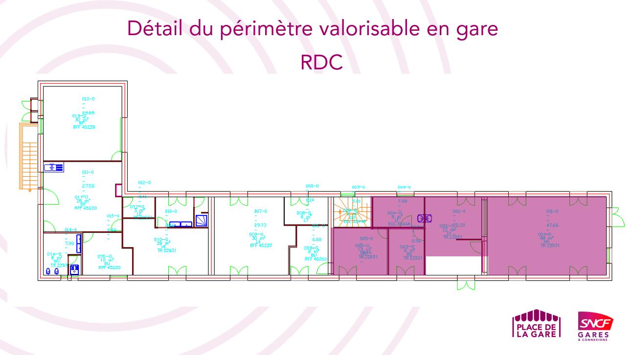 Au sein de la gare de Sainte Maure Noyabt, SNCF Gares & Connexions propose à la location un espace d'une surface totale de 100 m², réparti comme suit :
