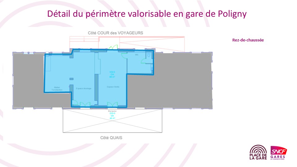 Nous vous proposons à la location un local de 74 m² situé au sein de la gare de Poligny.