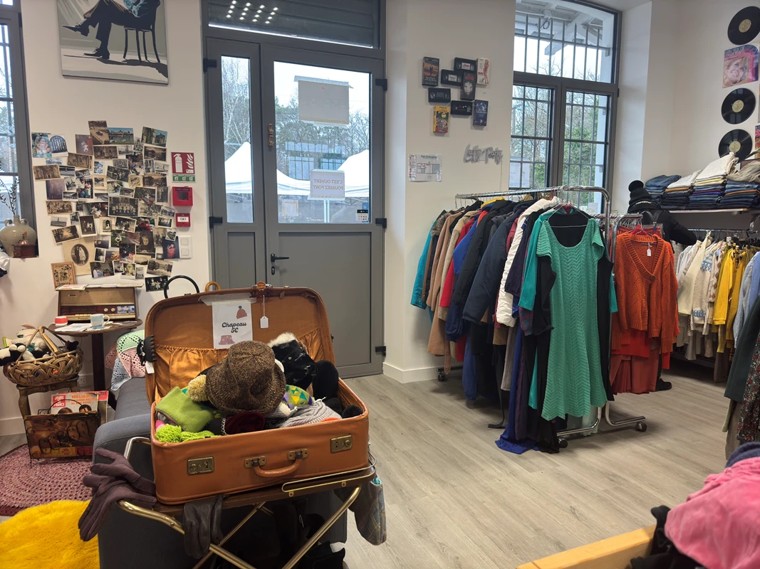 Joéma est une boutique engagée dans la récupération, la revalorisation et la vente de vêtements d’occasion. Fonctionnant sur le principe d’une ressourcerie, elle collecte des vêtements et accessoires issus d’apports volontaires, leur offrant ainsi une seconde vie tout en réduisant l’impact environnemental du textile. Pensé dans une démarche écologique, cet espace est entièrement aménagé avec des objets chinés, contribuant à faire revivre un bâtiment de gare inutilisé. Joéma incarne des valeurs fortes de solidarité et d’éco-responsabilité : en plus de prolonger la durée de vie des vêtements, elle permet à chacun d’accéder à des articles à prix solidaires.